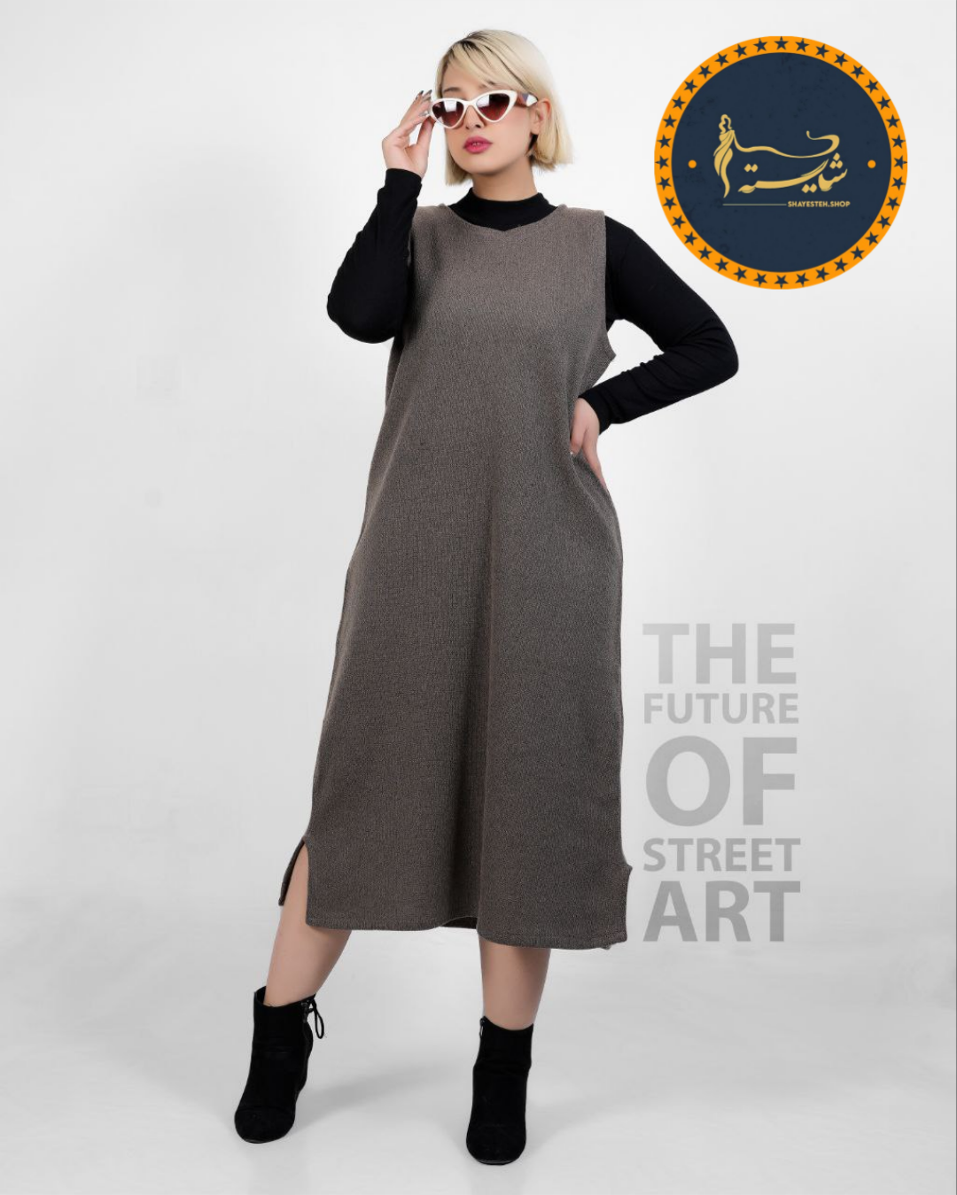 سارافن بلند زنانه جنس بافت آستین حلقه ای